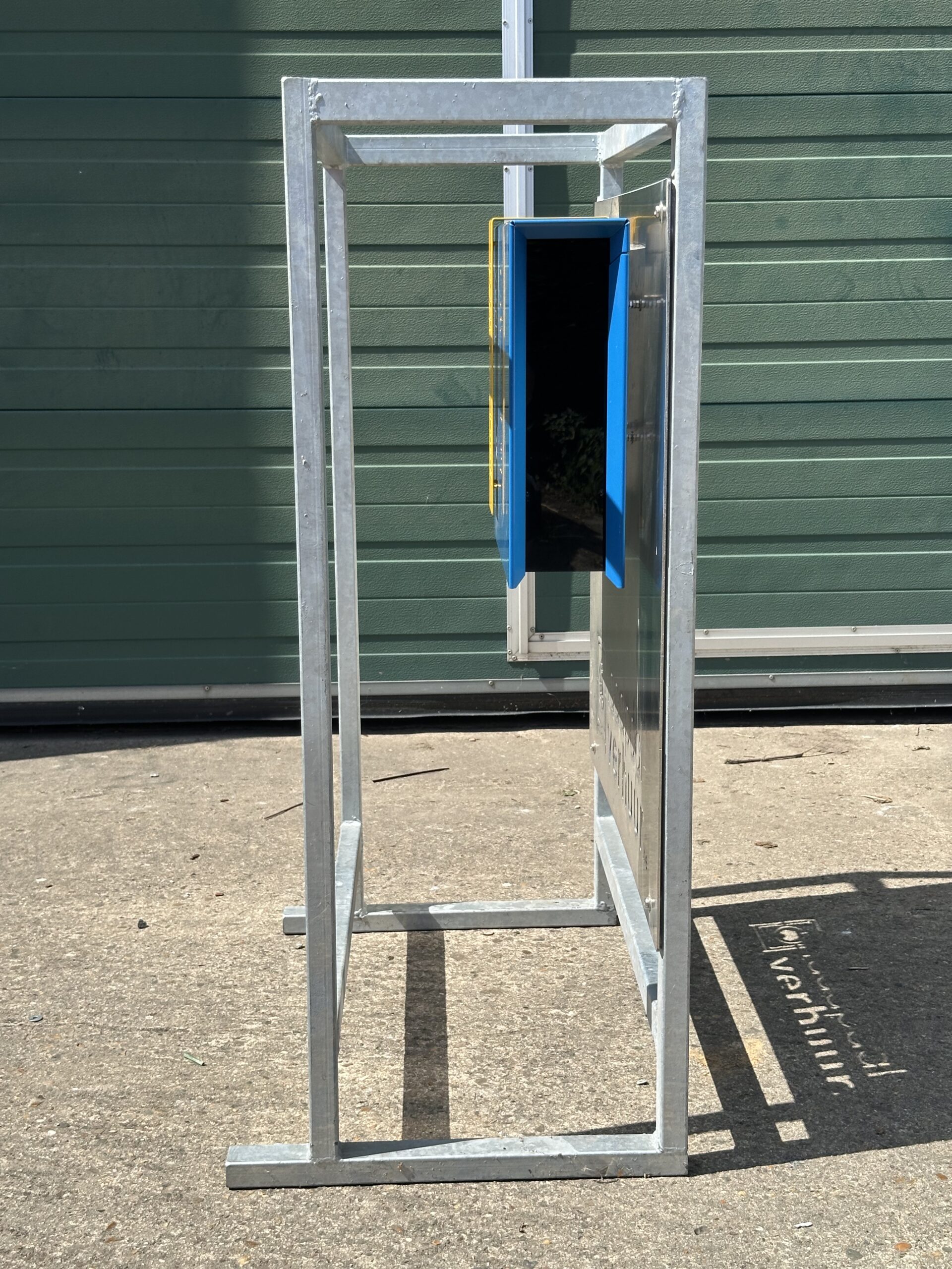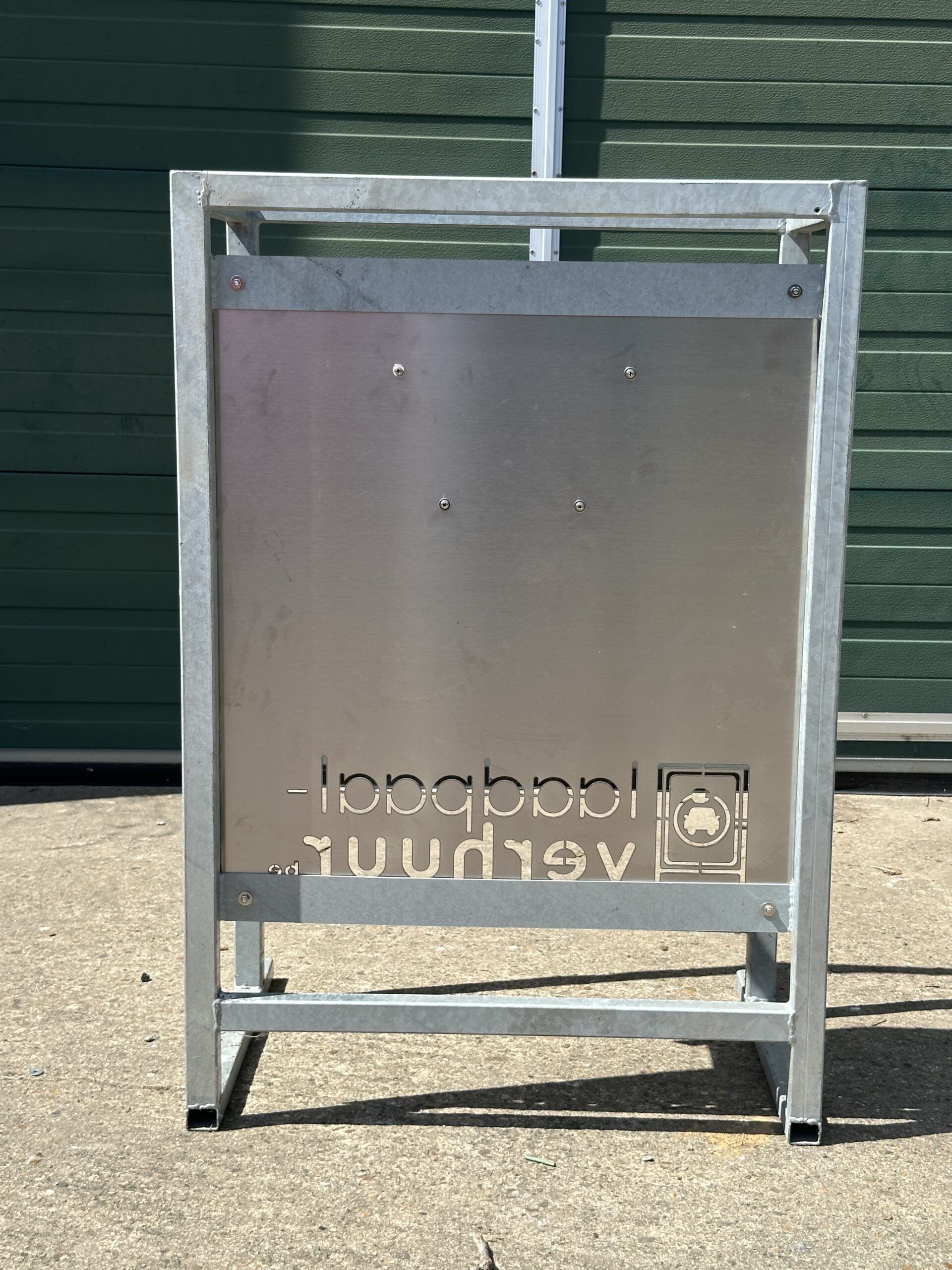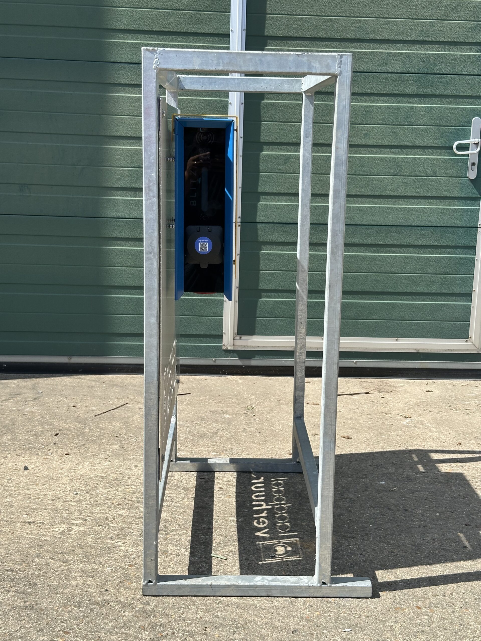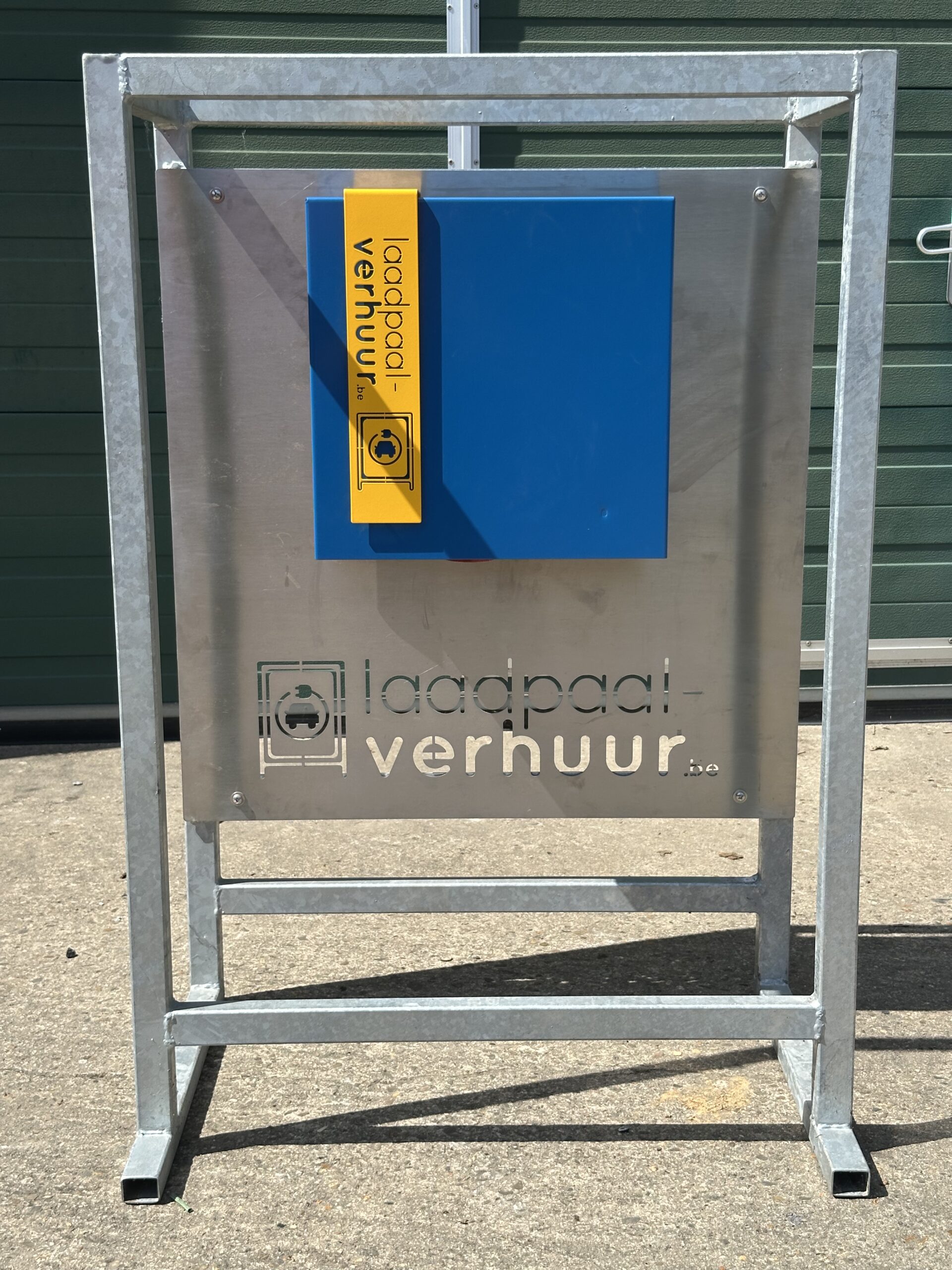 Uit onze ervaring met onze werfkasten is de laadpaal zo ontworpen dat deze beschermt wordt door het stalen frame.